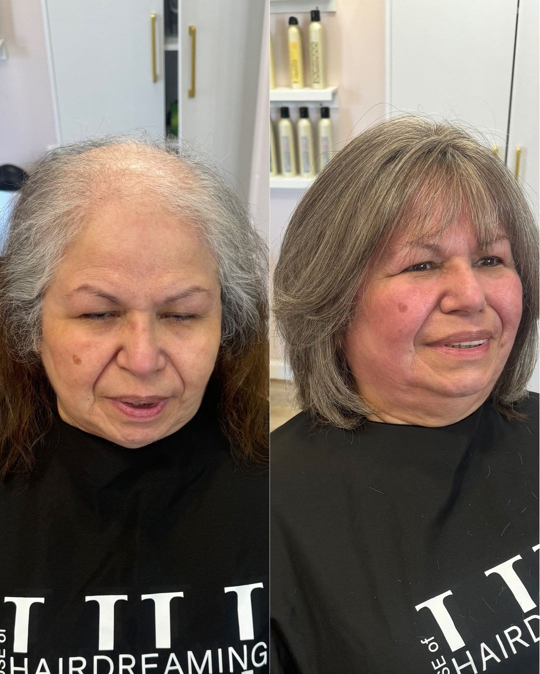 I had so much problems with my hair loss but not anymore I found the solution. I met Erin she did such a great job and I have my confidence back . Also Miriam is so nice they make me beautiful. I love my hair so much . Thank you so much .